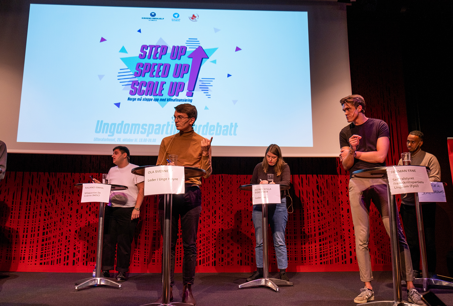 Onsdag 28. oktober møttes ungdomspartiene på Litteraturhuset i Oslo til debatt om temaet hvor Rød Ungdom (RU), Sosialistisk Ungdom (SU), AUF, Grønn Ungdom (GU), Senterungdommen, Unge Høyre (UH), og Fremskrittspartiets Ungdom (FpU) var tilstede.