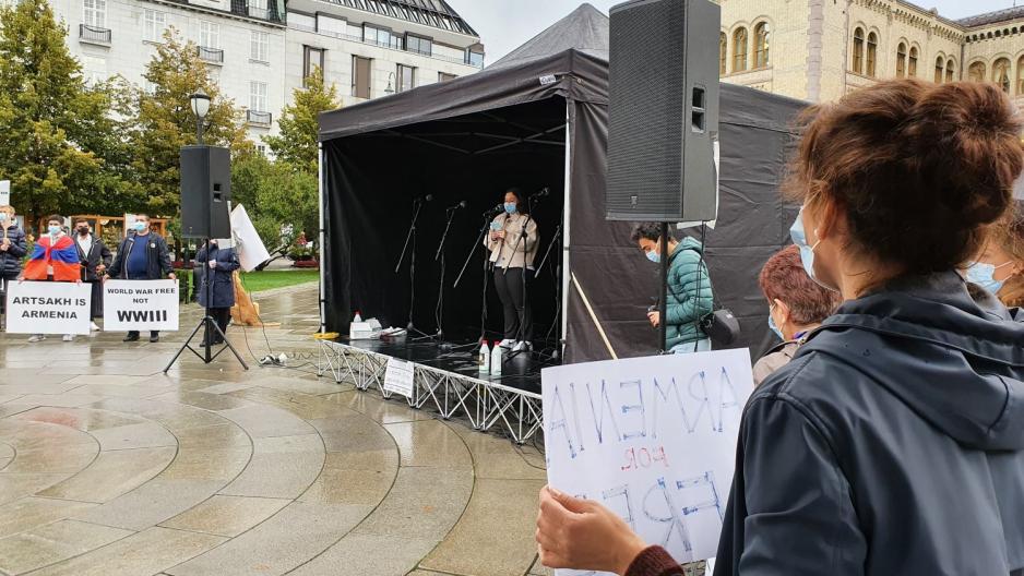 Blant de som talte på onsdag var flere med armensk opphav, samt Sven Erik Rise, rektor ved Oslo Private Gymnasium og selverklært «Armenian by choice». Han argumenterte i talen sin for at dette ikke er en nyansert konflikt, og at Norge burde ta avstand til Tyrkia og Aserbajdsjan.