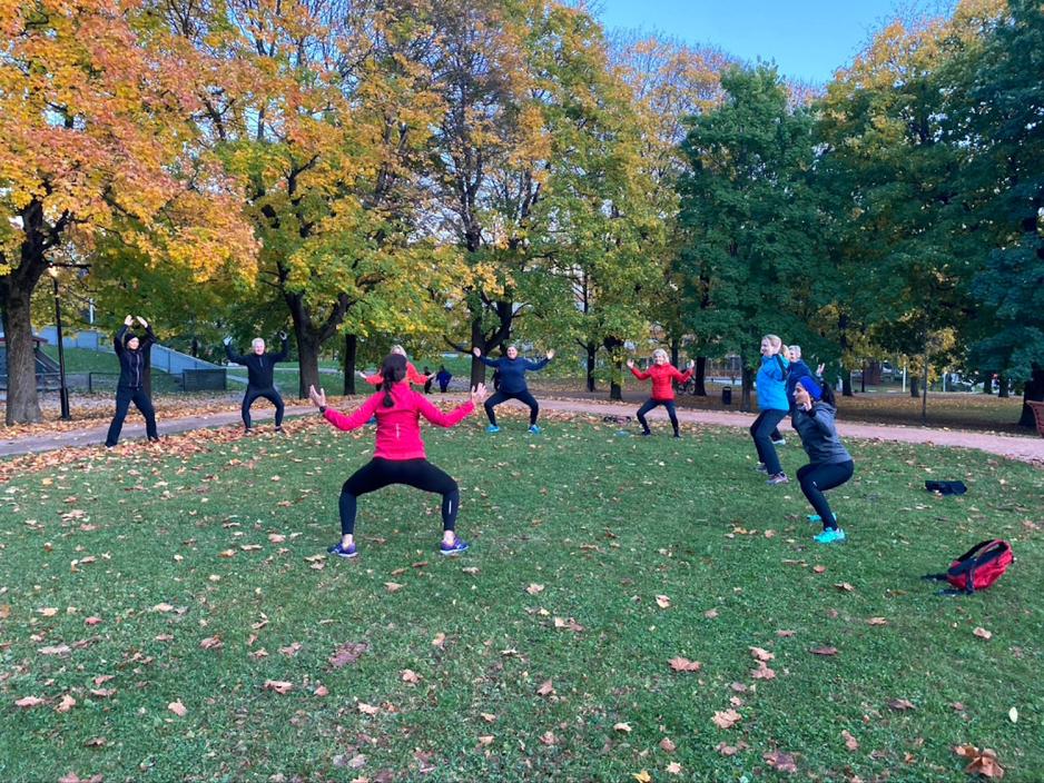 Øktene foregår i Frognerparken hvor omgivelsene blir brukt ved oppvarming og uttøying.