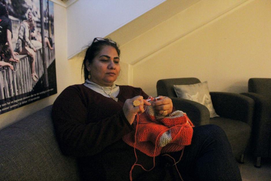 – Det var her jeg lærte å strikke. Nå strikker jeg hver dag, sier Shammut.