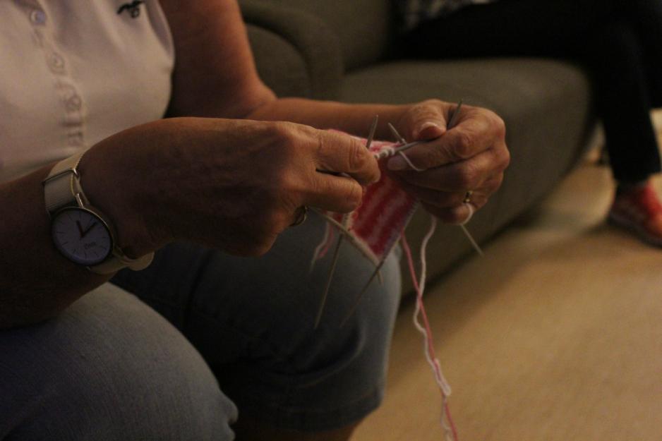 – Det er alltid hyggelig stemning her. Deltakerne hjelper hverandre med å strikke og frivillige steker vafler. Dessuten har de eldre alltid en god historie fra fortiden på lur, sier Herje.
