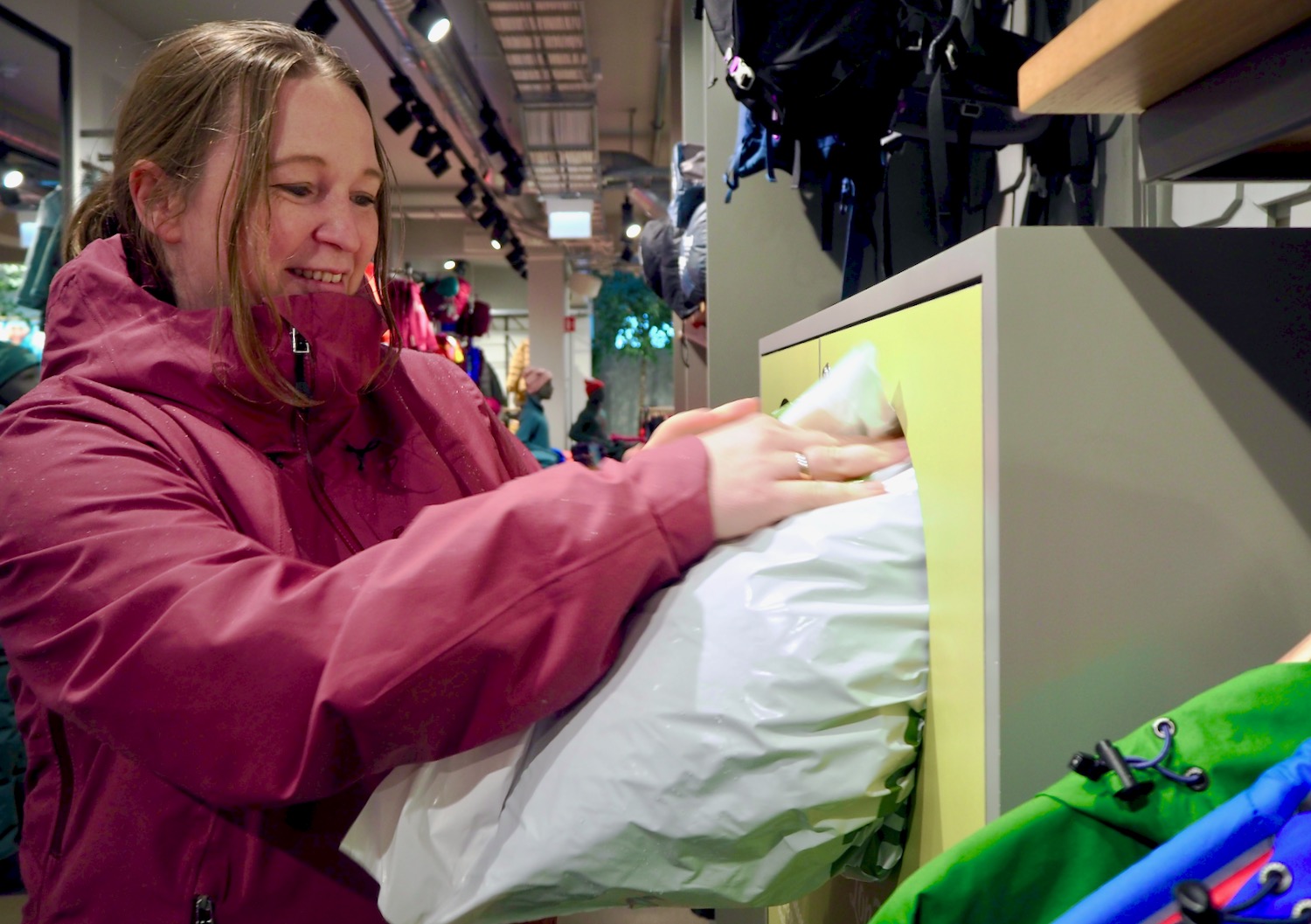 Hos Bergans kan ein bestille pantepose på nett, og fylle den med brukte turklær for så å sende den tilbake.