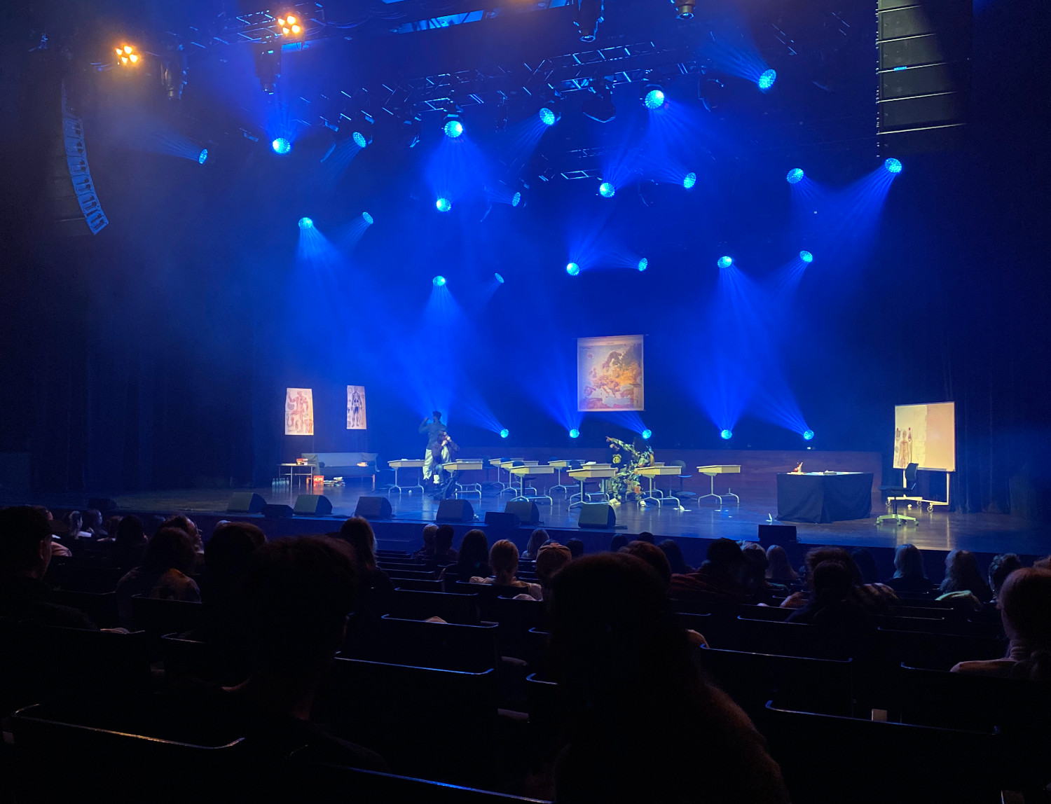 Scenen var gjort om til et klasserom. Foto: Emma Nordsteien