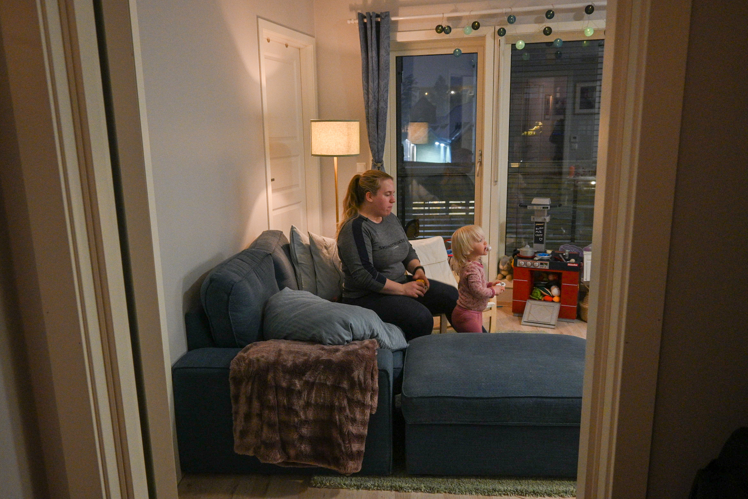 Lekene er dratt frem og en tegnefilm lyser opp den lille leiligheten på Mortensrud i Oslo. Dette er vanlig morgenrutine før alenemor Helene Holmsen Brenna (32) leverer datteren Agnes (2) i barnehagen. Normalt ville hun reist videre på jobb etter levering, men mye forandret seg da pandemien også nådde Norges dør i 2020.
