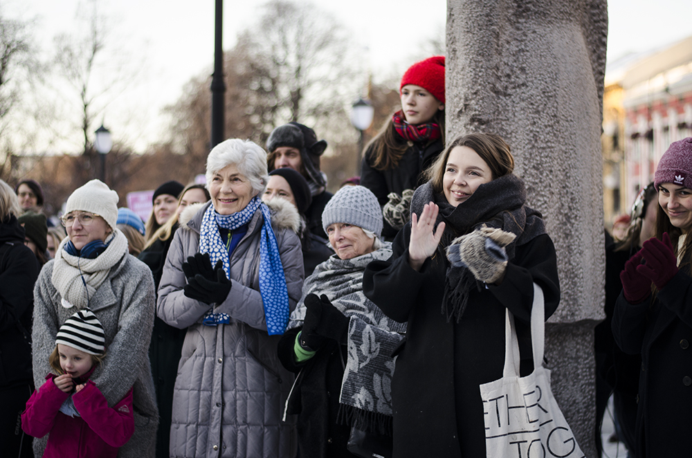 I fjor prøvde folk å holde avstand under 8. mars-markeringen i Oslo. I år blir det ingen markering i hovedstaden.