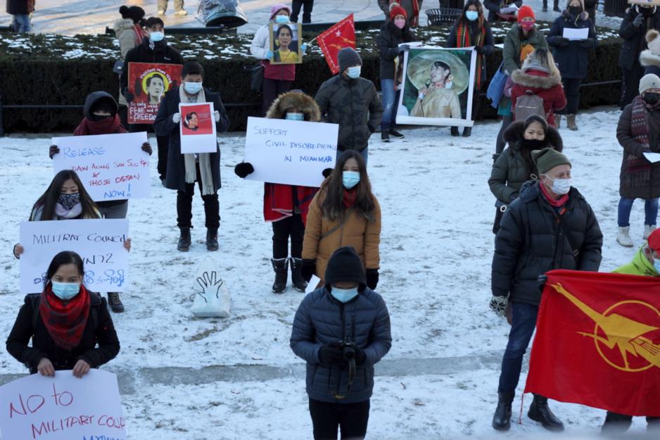 I Myanmar, tidligere kjent som Burma, ble demokratisk valgte politikere arrestert da militæret gjennomførte et kupp og tok makten mandag 1. februar. Lørdag formiddag samlet et hundretalls mennesker seg foran Stortinget for å demonstrere mot kuppet.