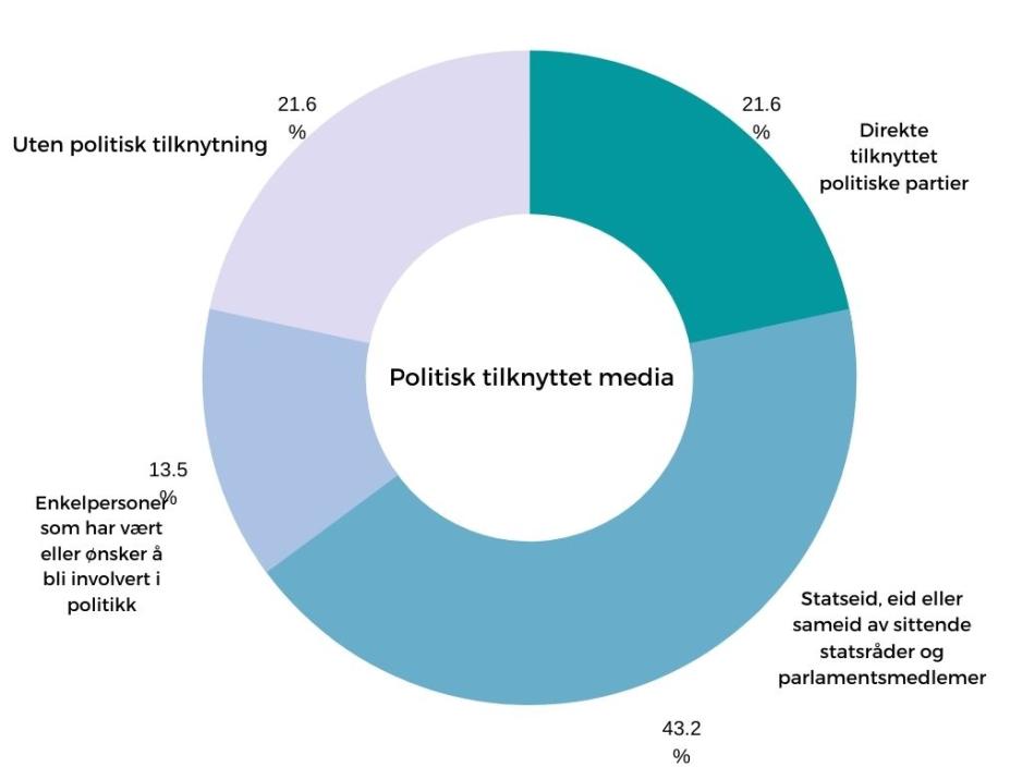 Nesten to tredjedeler av mediene tilhører nåværenende politikere eller politiske partier. Blant eierne av TV-kanaler finner vi den maronittiske presidenten Michel Aoun. Han er deleier av den populære arabisktalende nyhetskanalen OTV. Familien til den sunnimuslimske statsministeren Saad Hariri eide den arabiskspråkelige nyhetskanalen Future, før de gikk konkurs i 2019.