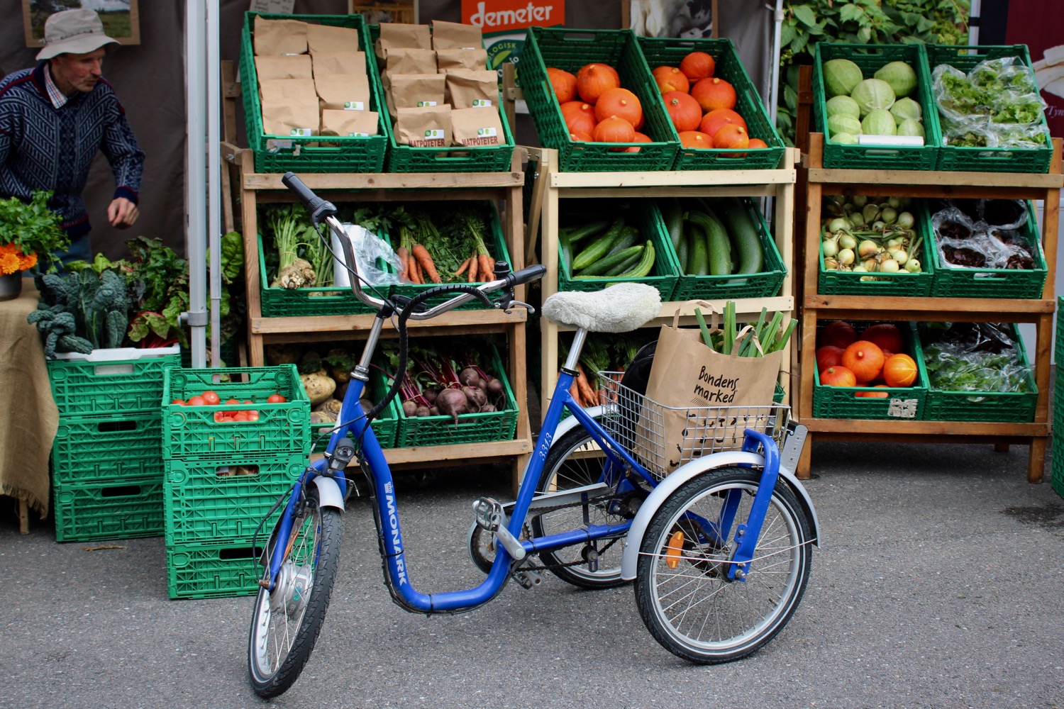 Tynne plastfilmer blir forsiktig fjernet fra smaragdgrønne esker av plast. Varene som befinner seg oppi plasseres pent på tøykledde bord. Et ugjennomtrengelig skylag henger som et teppe over Oslo, men tidlig på morgenkvisten transformeres et ellers grått og asfaltert område i Botanisk hage om til en fargerik markedsplass.