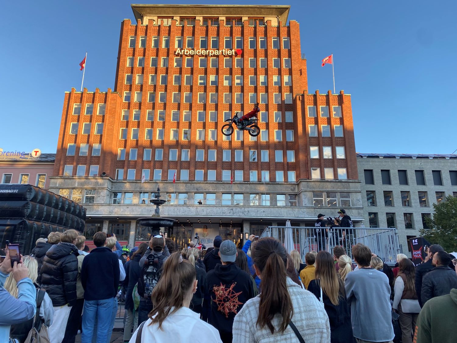 På Youngstorget var det i anledning byfestivalen satt opp et spektakulært show. Verdenseliten i motorcross hoppet over fontenen på Youngstorget og de unge aritstene Amara og Chris Abolade fremførte sanger til begeistring fra et variert publikum.