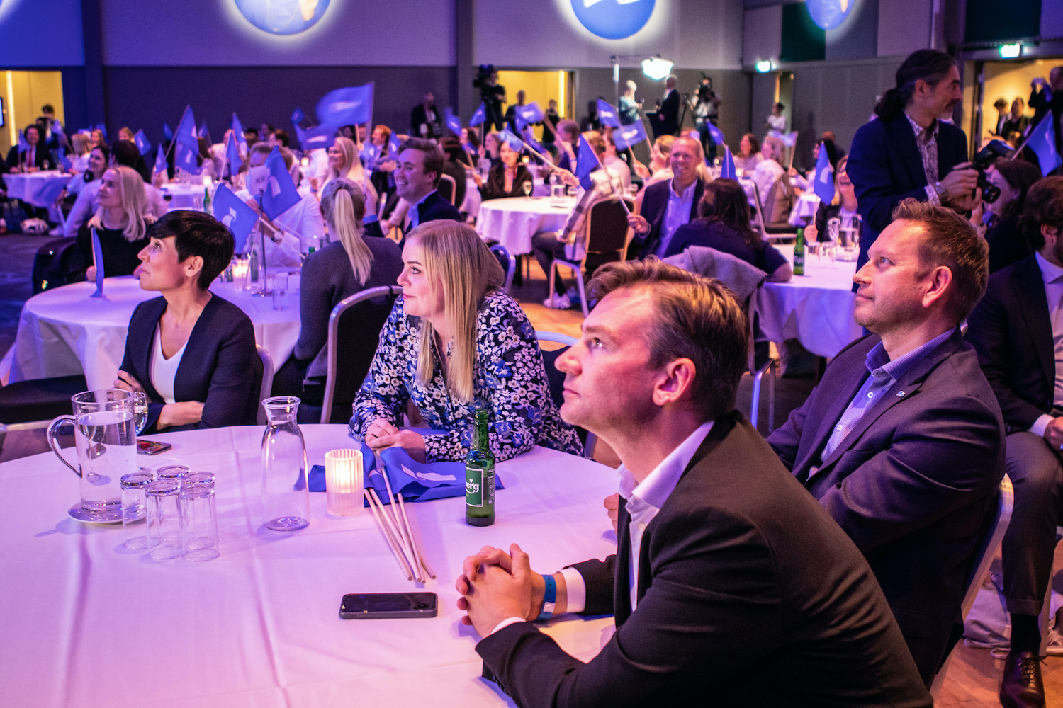Asheim fulgte prognosene fra fremste rad sammen med blant annet utenriksminister Ine Marie Eriksen Søreide og olje- og energiminister Tina Bru.