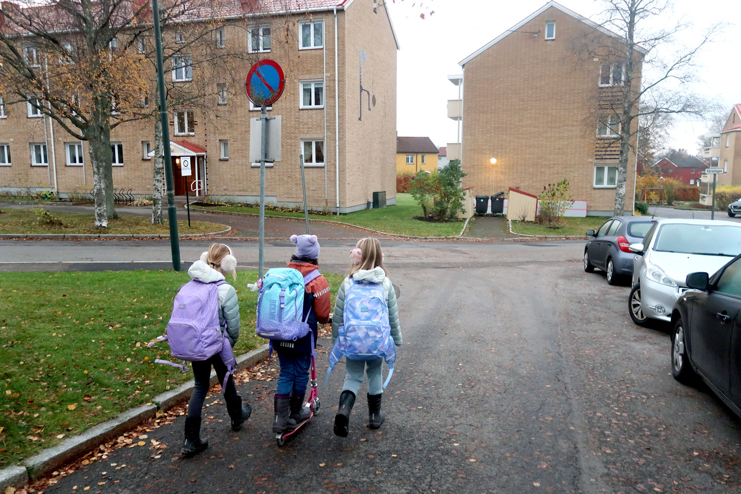 – Vi syns skoleveien vår er fin og trygg. I tillegg bruker vi kort tid til skolen, så det er deilig, sier jentene.