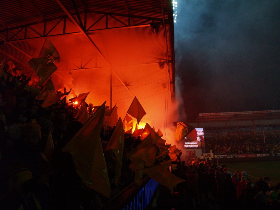 Bruk av pyroteknikk er ulovlig på norske fotballstadioner. Det hindret ikke supporterne på Åråsen i å fyre søndag kveld.