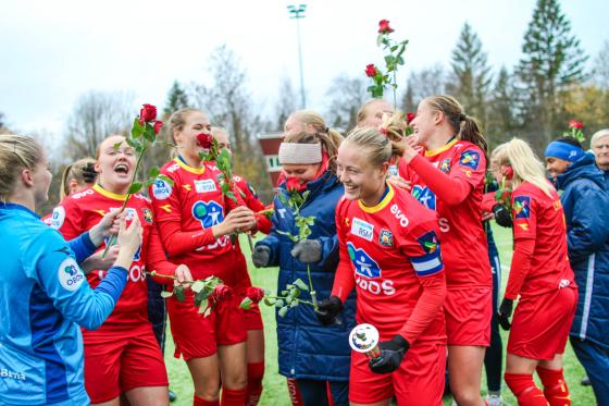 Røa trengte bare ett poeng i søndagens hjemmekamp mot Åsane for å sikre opprykket. De rødkledde scoret tre mål før pause og holdt nullen i andre omgang.