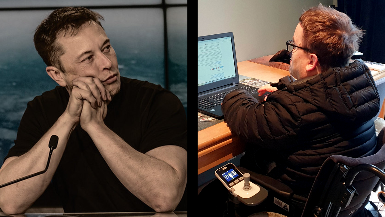 Håkon Bjar sier at han må sitte med høye skuldre mens han bruker PCen. Neuralink kan i fremtiden gjøre at han kan sitte i en posisjon som ikke gir smerter i nakke, skuldre og rygg.