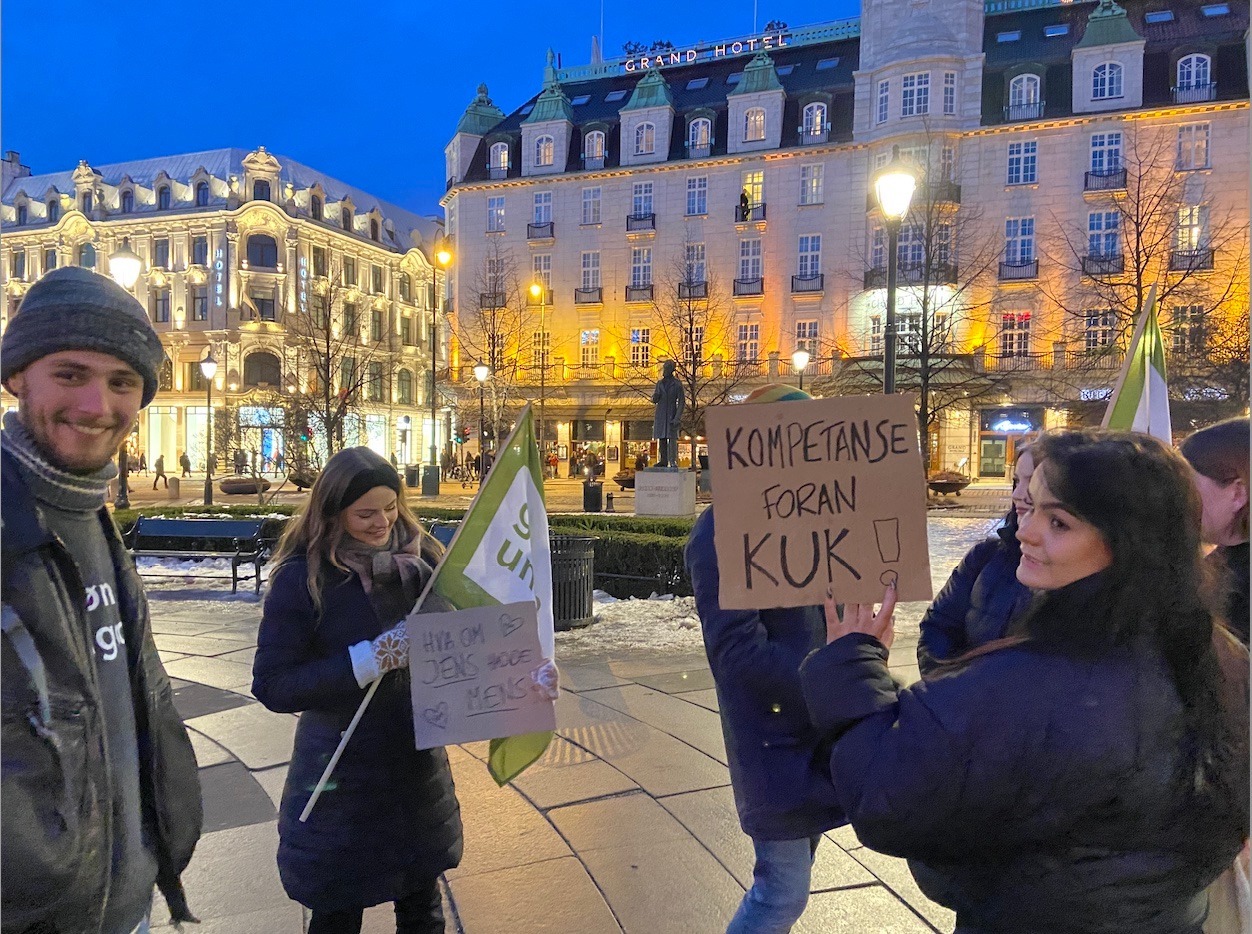 Fredag 11. februar avholdt Grønt Kvinnenettverk en demonstrasjon mot ansettelsen av Jens Stoltenberg som ny sentralbanksjef.