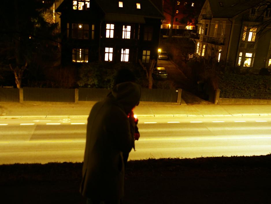 I det klokken begynner å nærme seg tolv, er mennene er ferdig med å røyke. De kaster pakken med rullepapir, og tar turen nedover St.hanshaugen og deretter videre hjemover.