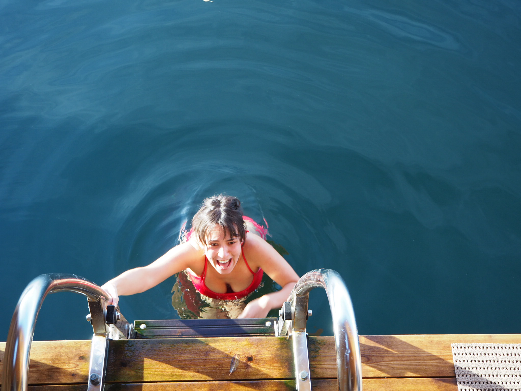 Selv om det kun er tolv grader i vannet, er det mange personer som bader og bruker badstuene. Daglig leder Ragna, forteller at det er klokken syv på morgenen det er mest folk her.