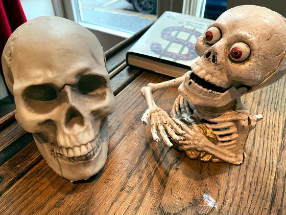 Det er ikke bare kake som setter stemningen. Cappelens Forslag pyntes med lys, dødninghoder og duker. Slik blir den lille og sjarmerende sjappa klar for å holde Dødskafe.