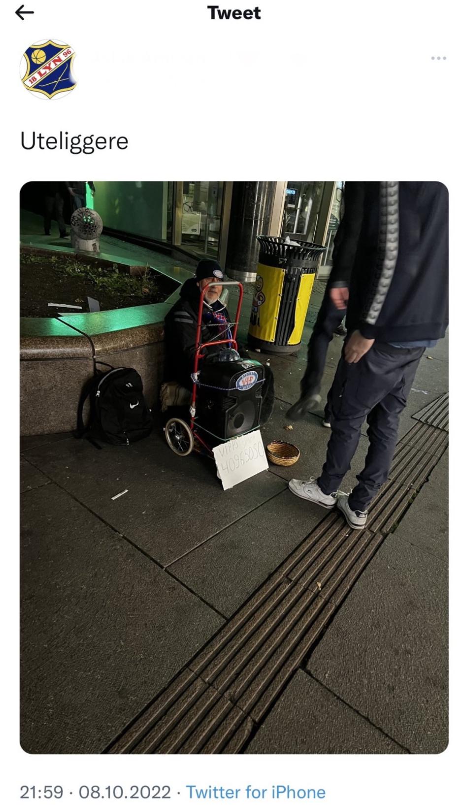 Klokken 21:59 lørdag kveld ble det publisert et bilde av Vålerenga-supporter Nicolaie Vaduva på twitter med teksten "uteliggere". Nicolaie er kjent for å spille av Vålerenga-sanger rundt omkring i Oslos gater på høyttaleranlegget sitt. Han har vært Vålerenga-supporter i over 20 år. Går du ofte i Torggata, er det stor mulighet for at du har sett Nicolaie i Vålerenga-klær.