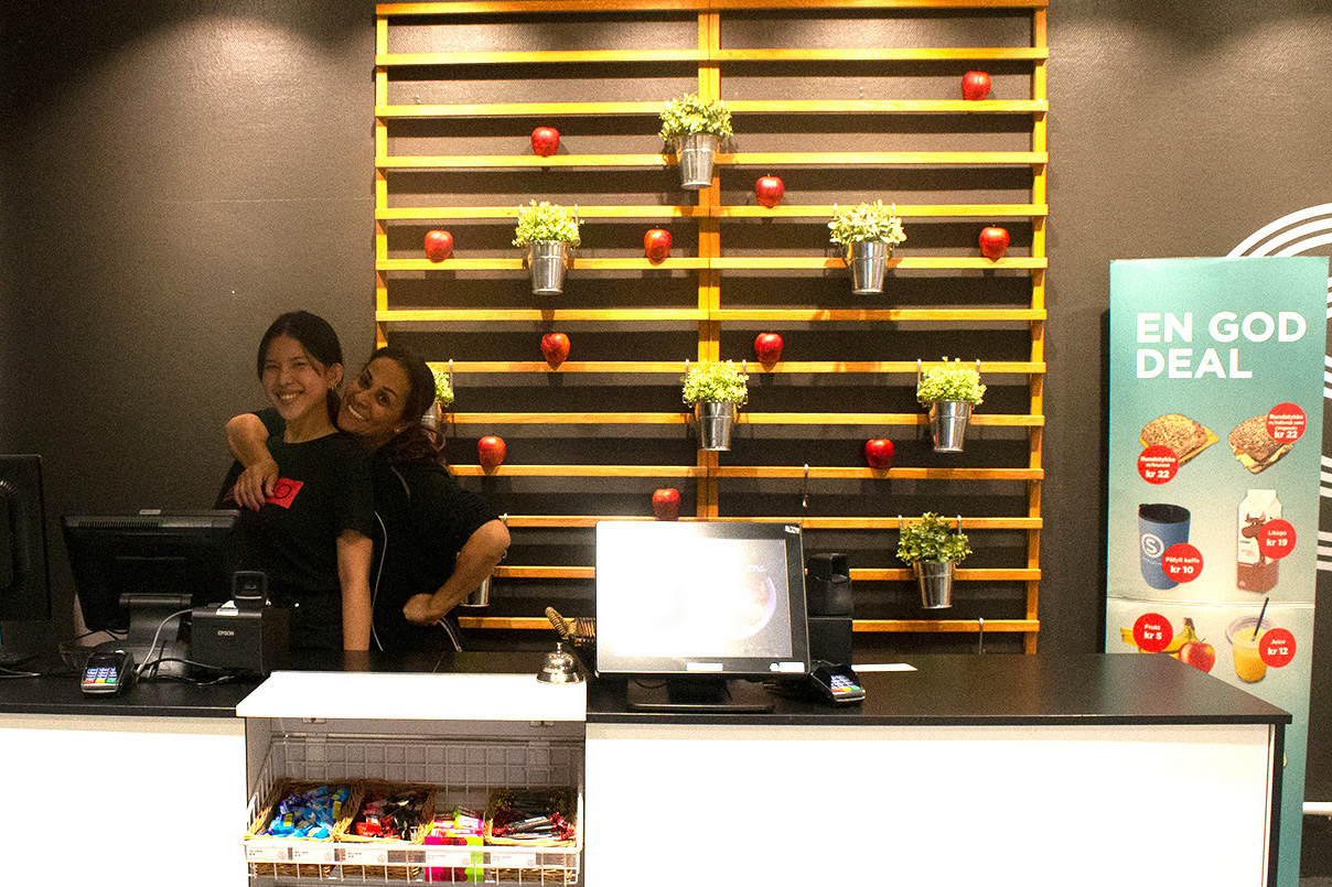 Ziva Engel kommer smilende ut fra bakrommet for å rydde brusbokser i kjølen på Kafe Eva. Kafeen befinner seg i bygg P48 på OsloMet. Hun forteller at det er mest svart kaffe som blir solgt i kiosken.