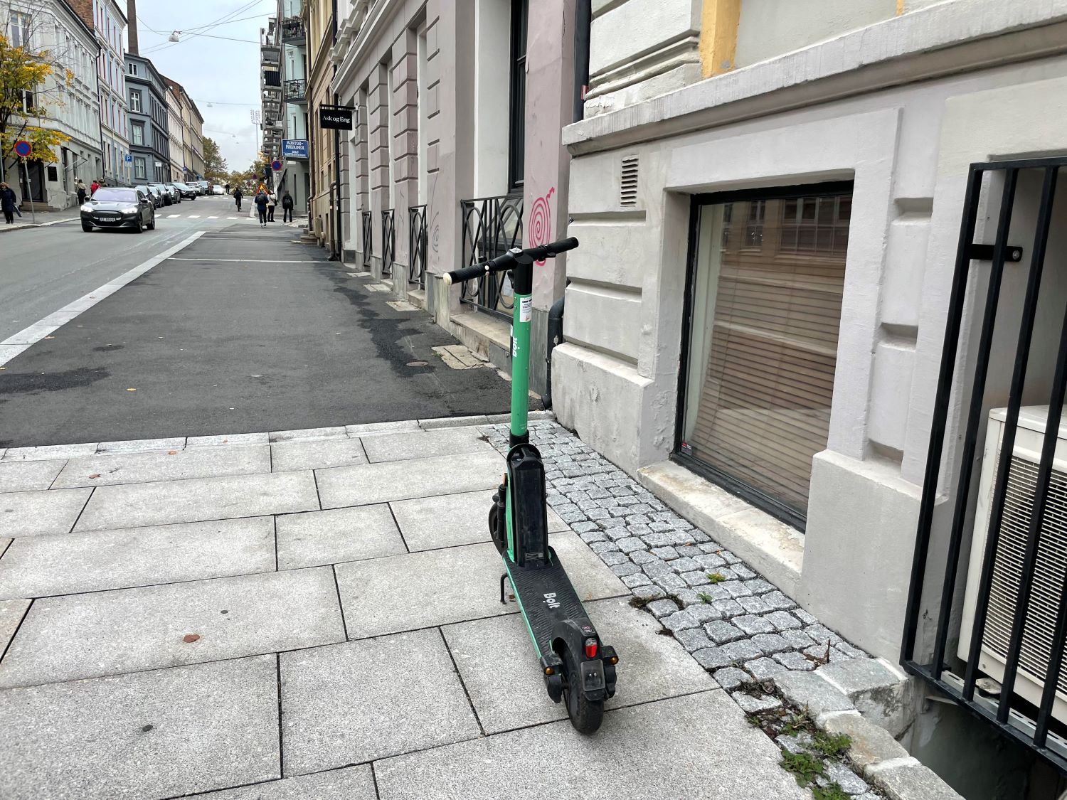 "@NBFOslo: Her står en elsparkesykkel klint inntil gelenderet og en annen rett foran trappen ved fortau og fotgjengerfeltet i Sørkedalsveien. Slik blir Oslo mindre trygg og tillgjengelig for svaksynte og blinde fotgjengere. Hva skjer med geofencing? @sirinstav @RaymondJohansen"