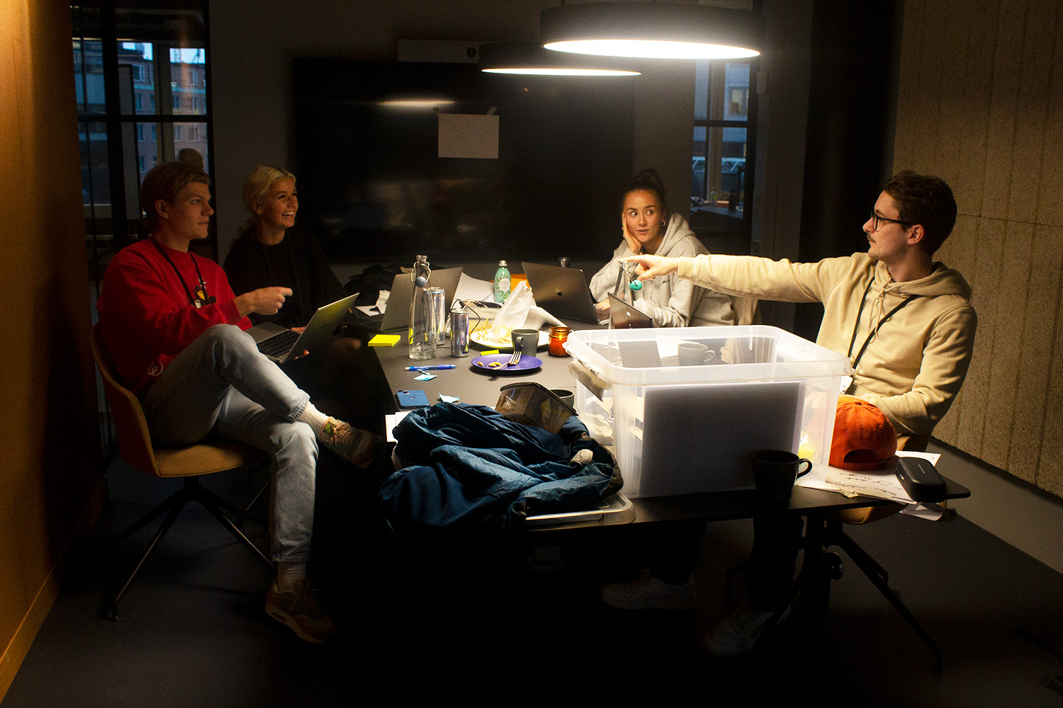 Jørgen Sjåvik (28), Henrik Rodt (25), Carmen Myhre (24) og Lene Gudvangen (24) er alle masterstudenter på det helt ferske studiet. De er alle enige om at det er et veldig intenst, men gøy studium.