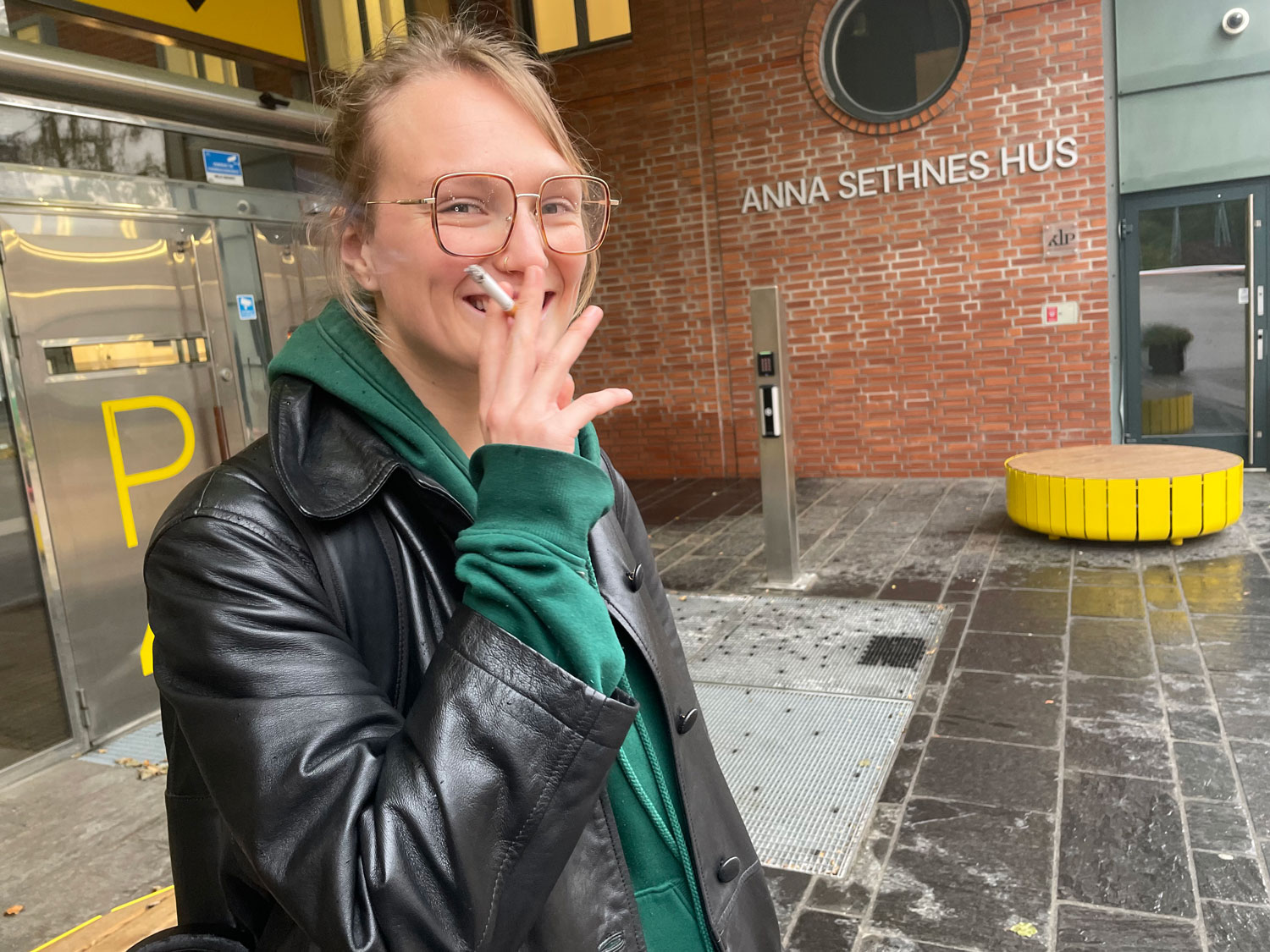 Det sier OsloMet student Livø Moen Eikeland. Selv i oktoberregnet er ønsket om en sigg etter forelesning stort nok til å gå ut.