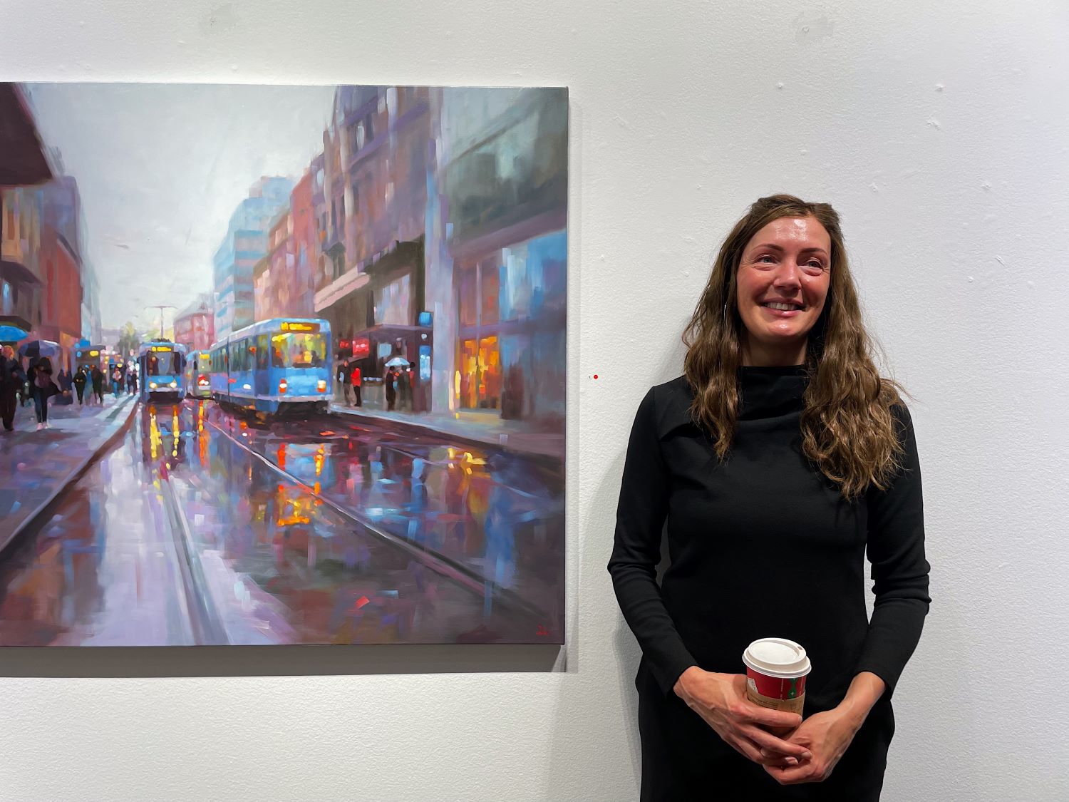 I år er det 20 år siden Camilla Grythe debuterte som kunstner. Det feires på Norges største galleri med maleriutstilling og god stemning.