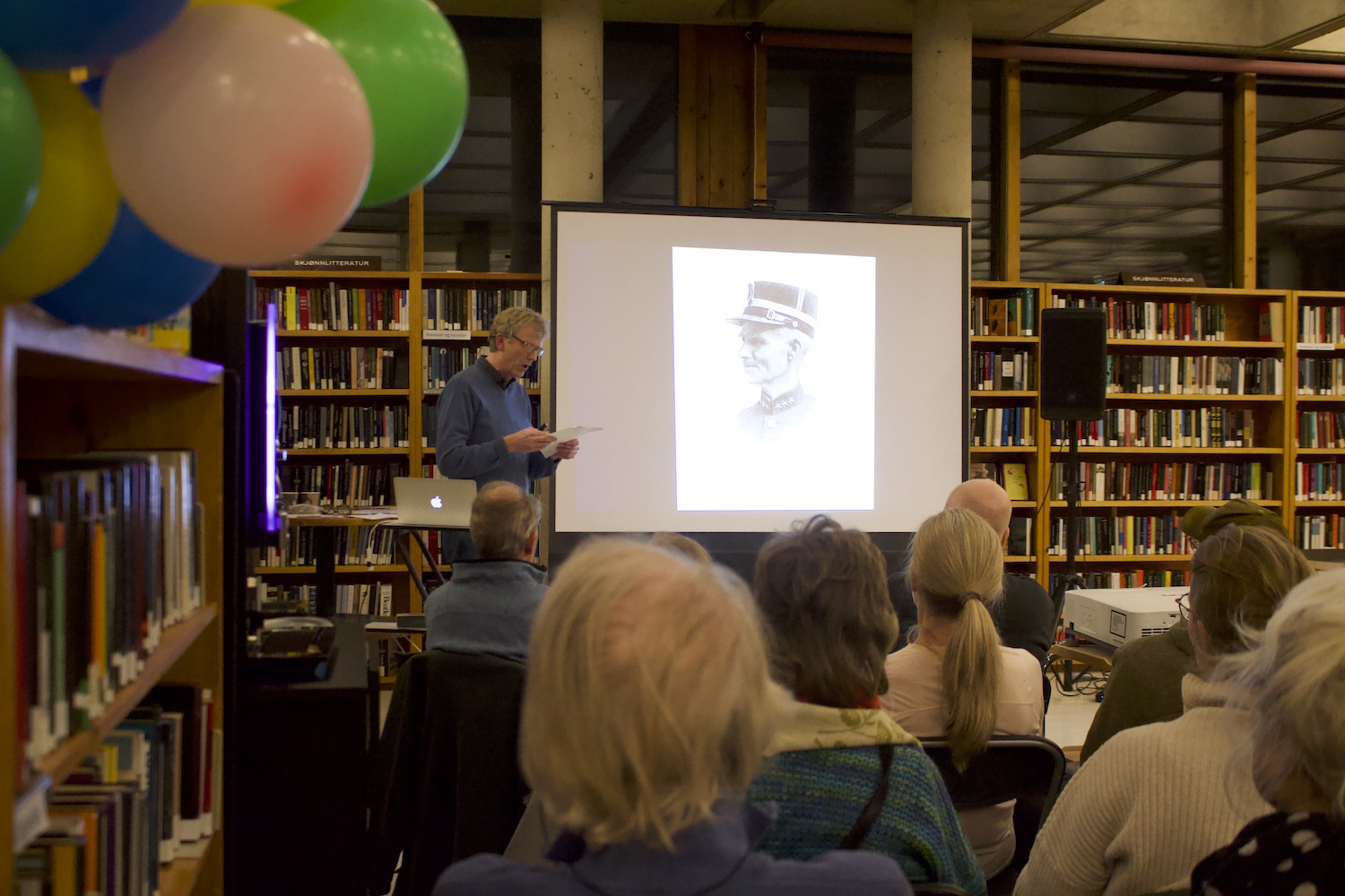 Bøler-mann og lokalhistoriker Even Saugstad holdt tirsdag foredrag som en del av feiringen til biblioteket.