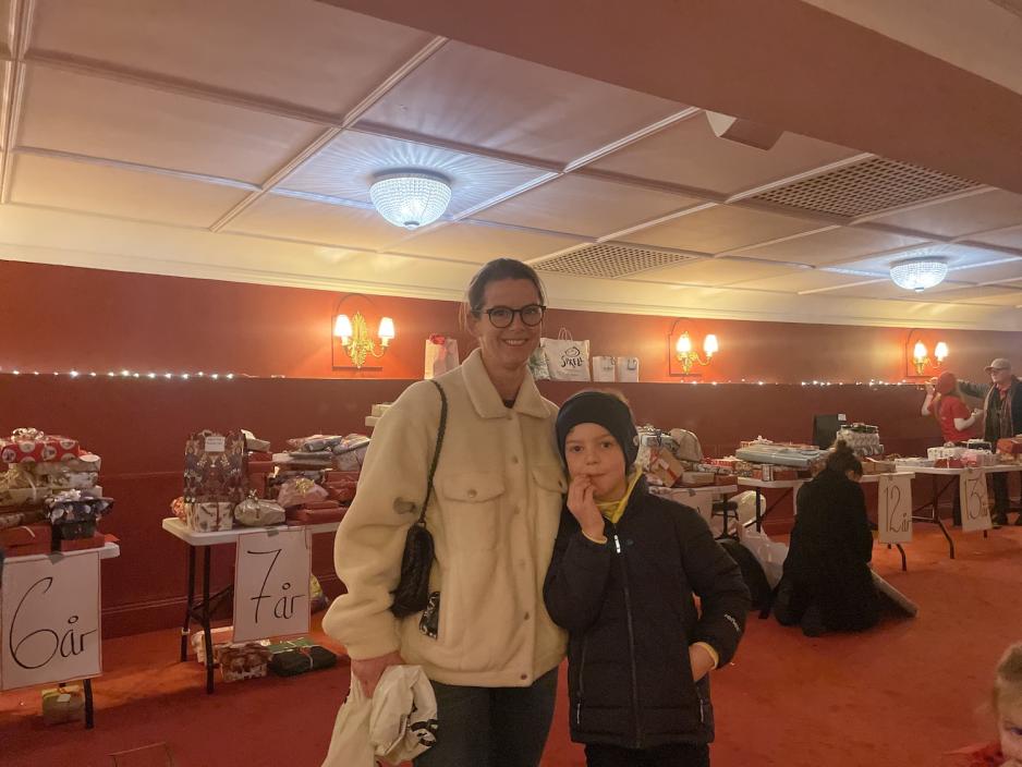 Ellen Heyerdahl har med seg sønnen for å levere årets julegave til et barn som trenger det.