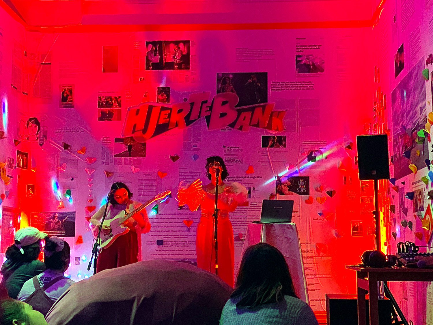 Nå har bestevennene Narma Beatrix Saleem og Sarah Christin Calvert holdt konsert der med sin popgruppe FLTY BRGR GRL. Under denne koserten fikk publikum ligge å slappe av på en stor rosa pute som skulle fremstille en hjerteknute. Med rosa-tema og litt småcreepy sanger om kjærlighet, forelskelse og stalking, følte duoen at de passet rett inn i utstillingen hos interkulturelt museum.
