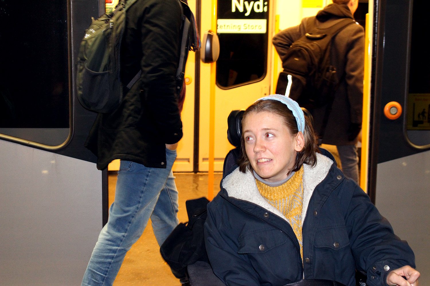 Ida Hauge Dignes trenger rullestol for å bevege seg rundt, og møter på barrierer hver eneste dag. Hun skriver en master på UiO i Statsvitenskap, og er avhengig av kollektiv transport. På instagram har hun delt flere videoer der hun illustrerer barrierene hun møter når hun tar t-banen.