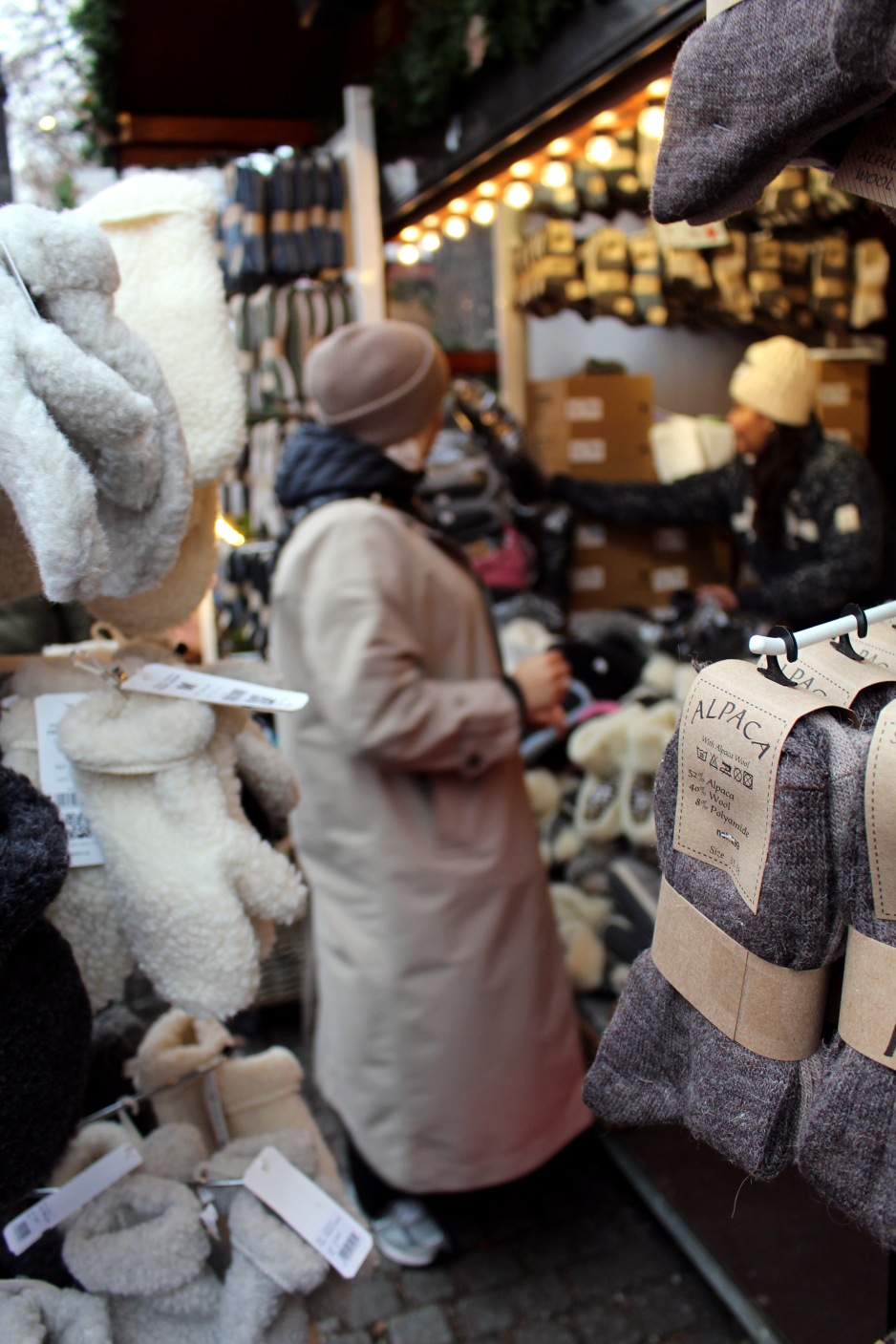 Larin er spesielt glad i alpakka ull, hun stoppet for å kjøpe seg nye hansker så snart hun oppdaget en bod som hadde hansker i Alpakka ull. Det synes hun er varmt og godt.