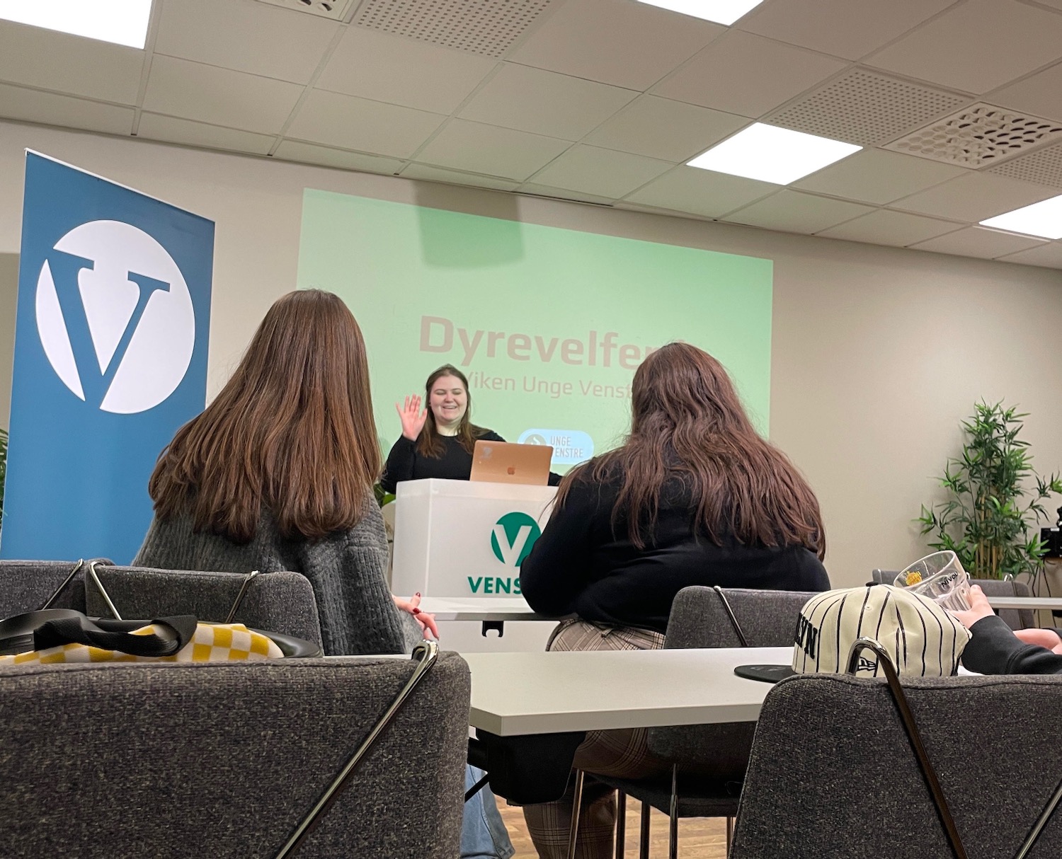 Temaet for tirsdagens møte i Viken Unge Venstre var dyrevelferd. Ingebjørg Flyum Bjørlo understreker viktigheten av at dyrene respekteres.