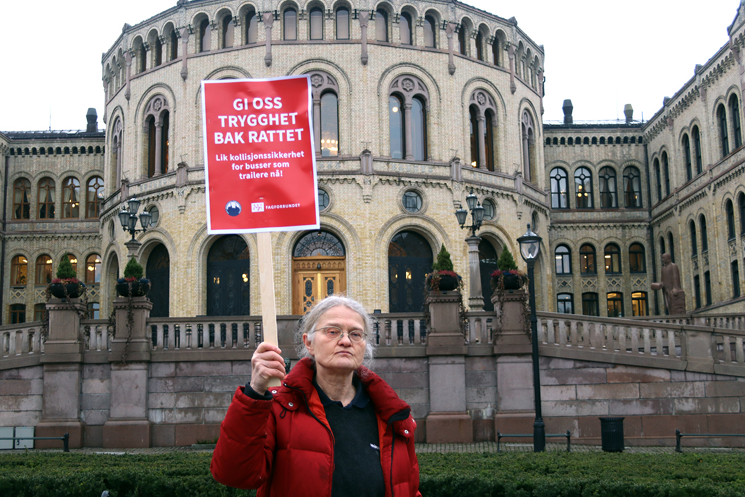 – Vi har våre krav. Vi skal ha like god sikkerhet på bussen som de har på trailerne, sier Marit Sauge, leder av bussarbeiderklubben i Oslobyrådets arbeiderforening og Fagforbundet.