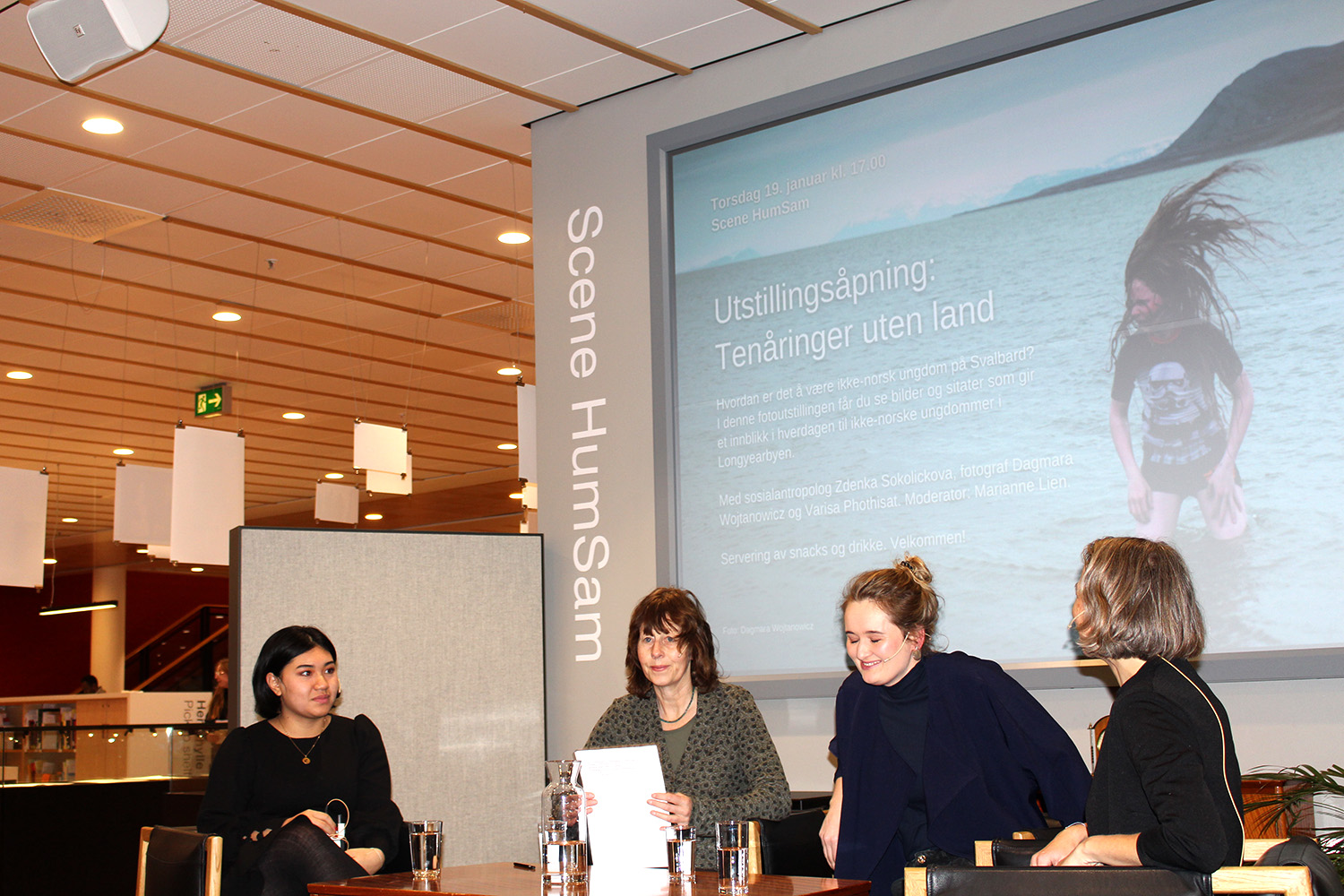 "Teenagers without land" er et forskningsprosjekt gjennomført av sosialantropolog Zdenka Sokolíčková. Hun har sammen med fotograf Dagmara Wojtanowicz laget utstillingen "Tenåringer uten land", som nå kan oppleves på HumSam-Biblioteket på UiO. Med forskningen og utstillingen håper de å kunne bidra til å endre livet for noen av de unge ikke-norske minoritetene på Svalbard.