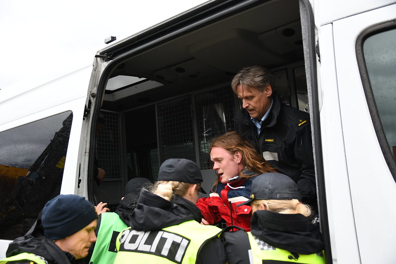Det tok bare 4 dager før sikkerhetstjeneste i departementet ba politiet om å fjerne aksjonister. Og under 4 timer før politiet iverksatte. Men vindturbiner, det er det vanskeligere med, tross over 500 dager siden dom fra Høyesterett i storkammer. Pinlig.
