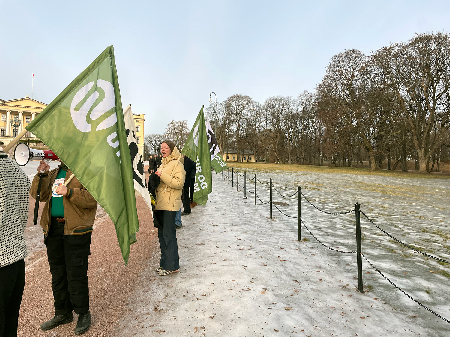 Nyheten om en hastet pressemelding, førte til en hastet demonstrasjon. Luften er så kald at vann blir is, men Natur og ungdom reagerte med hett sinne. De tok beina fatt, og med hodet hevet gikk de bestemt mot Slottsplassen.