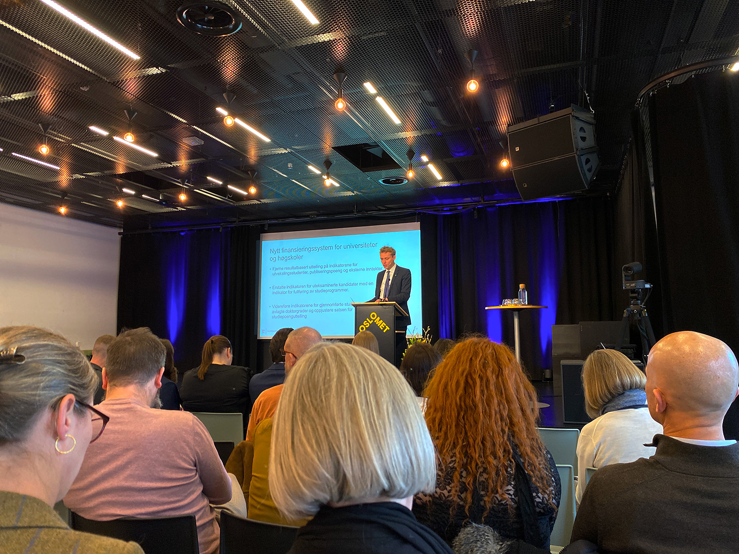 Stortingsmeldingen ble lagt fram på OsloMet, og det var universitetets rektor, Christen Krogh, som innledet framleggingen.