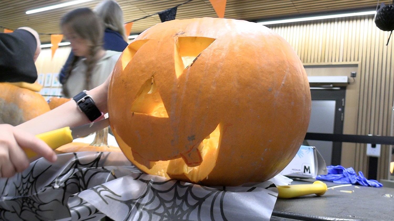På lørdag 28. oktober arrangerte Harbitz Torg gresskarskjæring for barna i nabolaget. Det er tredje året på rad eventet arrangeres, og i år får de hjelp fra foreldrene på Bestum skole. Inntektene skal gå til sjetteklasses skoletur.