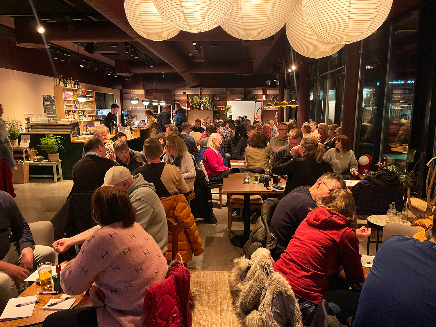 – Hvis folk vil komme på quiz må jeg advare om at man må komme tidlig. Det er fullt her. Folk kommer hit helt fra klokken fire og quizen starter jo ikke før sju. Folk sitter i timevis for å sikre seg bord, forteller Bakke.