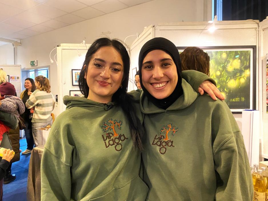 Aysu Acar og Sara Naser er to av ungdommene fra Stovner som er aktive i Líf Laga, og som var til stede på vernissasjen.