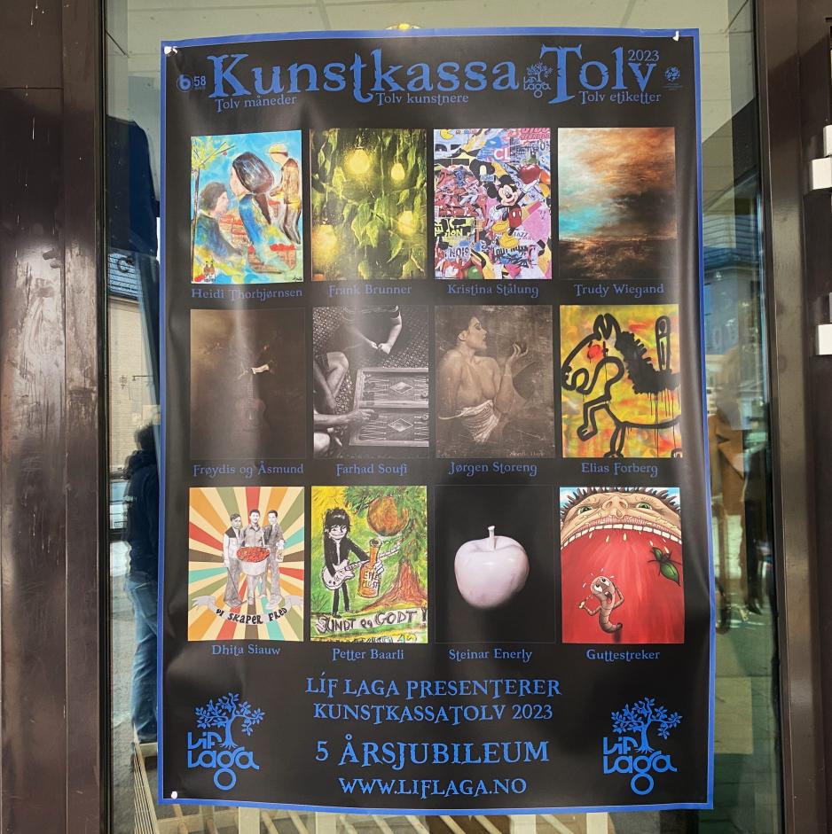 Lørdag 4. november avholdt Líf Laga, i samarbeid med Lions Club Oslo Høybråten, en vernissasje på Høybråten skole. Kunstutstillingen var en feiring av fem-årsjubileumet til «Kunstkassa TOLV», Líf Laga sitt kunstprosjekt.