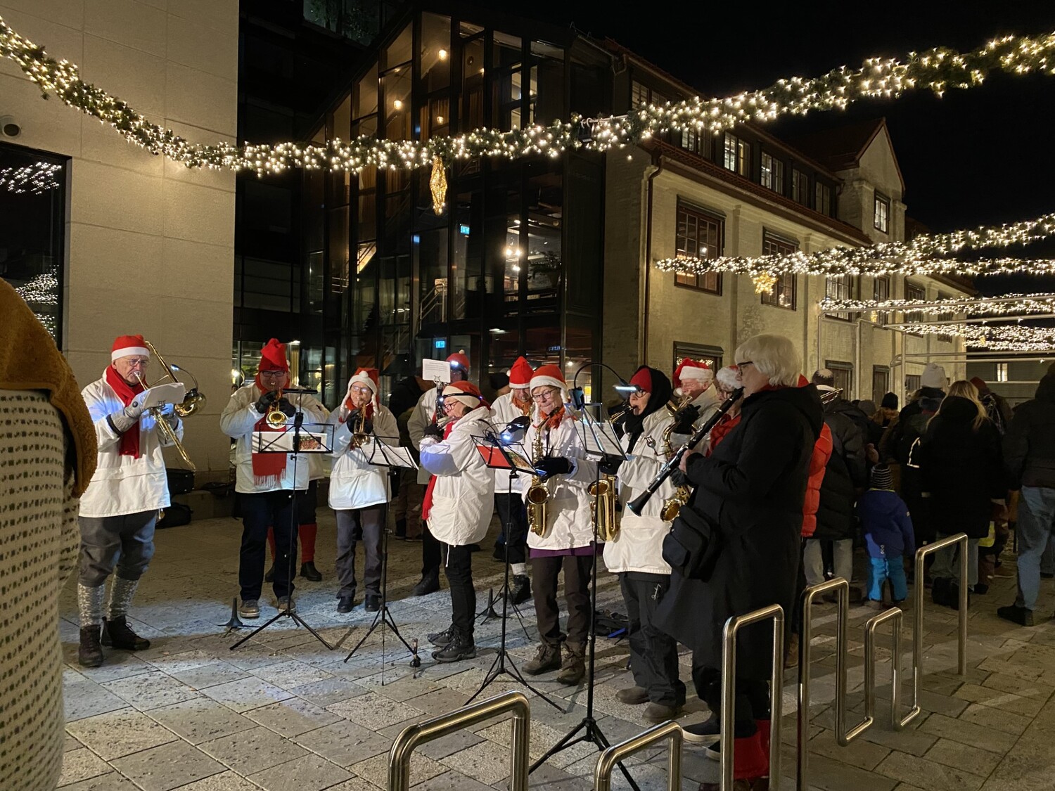 Deretter kunne julegatelysene tennes og korpset kunne fortsette å spille stemningsfull musikk mens det ble utdelt pepperkaker og gløgg. Butikker og spisesteder på Harbitz Torg kunne også i tradisjon tro love gode familietilbud til julegateåpningen.