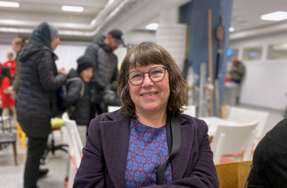 Helga Kvilstad er en av mange som har tatt turen til Årvoll skole søndag morgen. Hun storkoser seg på loppemarked, og vil beskrive seg selv som en loppeveteran.