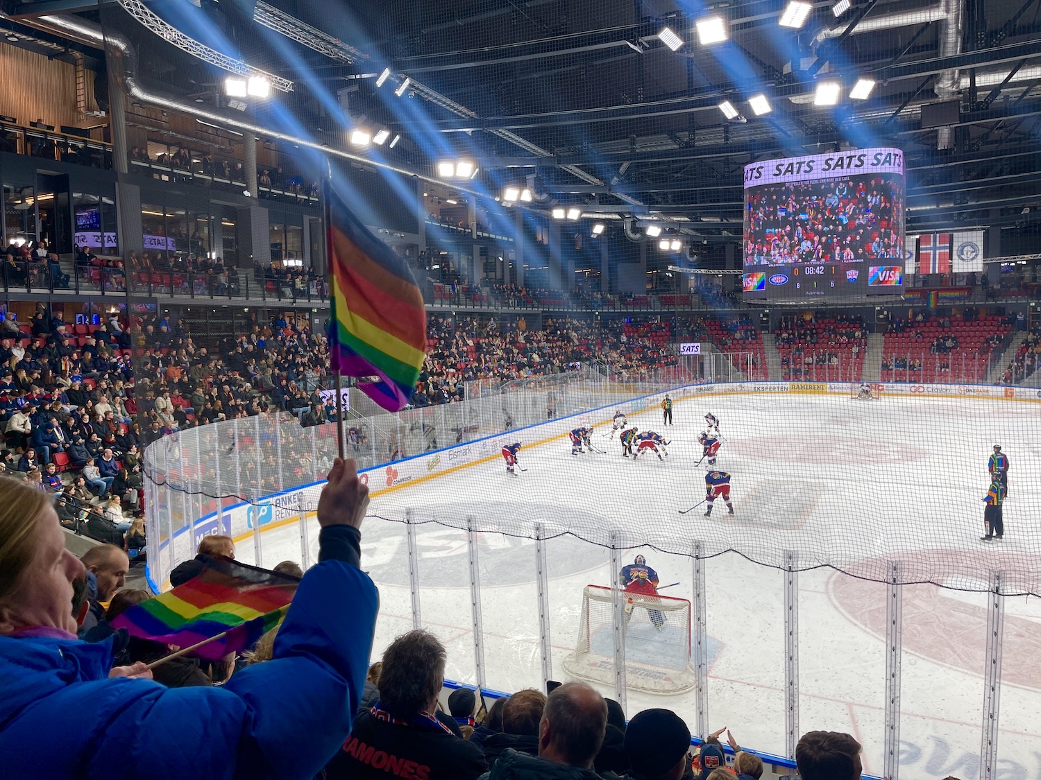 (Vålerenga - Lillehammer 2-1 e.e.o.). Det var fullstappet og god stemning på Jordal Amfi torsdag kveld der Elitehockeyligaens Pride Week preget tribunen