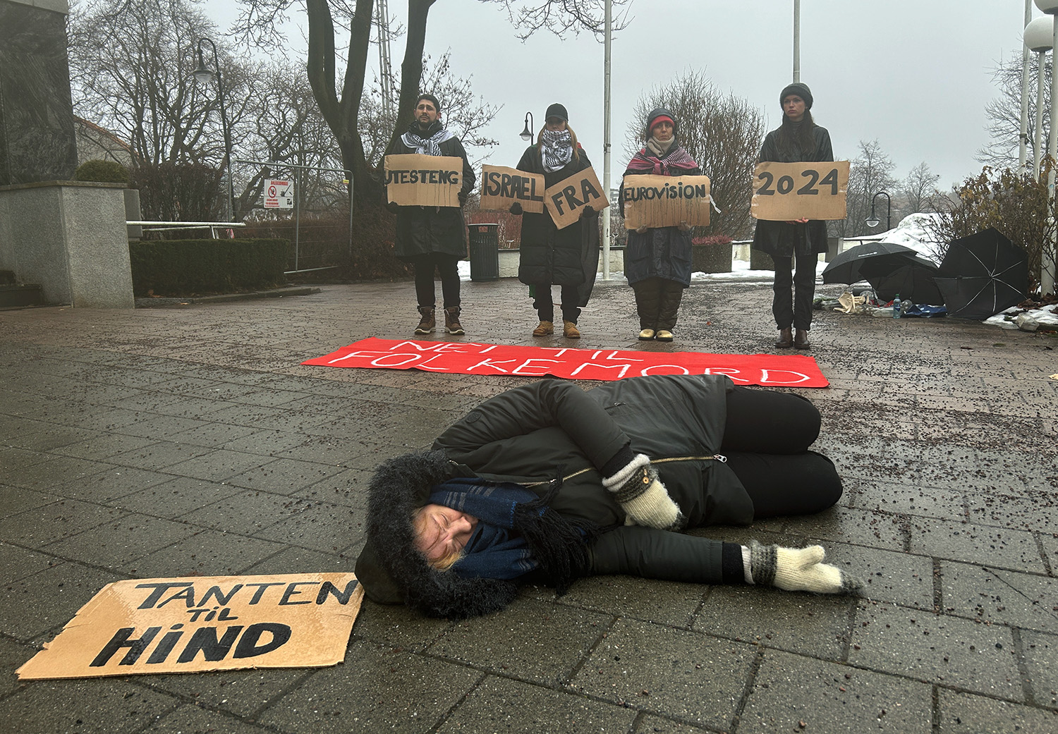 Aksjonsgruppa Palestina mener Israel bør boikottes fra Eurovision i 2024. Nå demonstrerer de utenfor NRK.