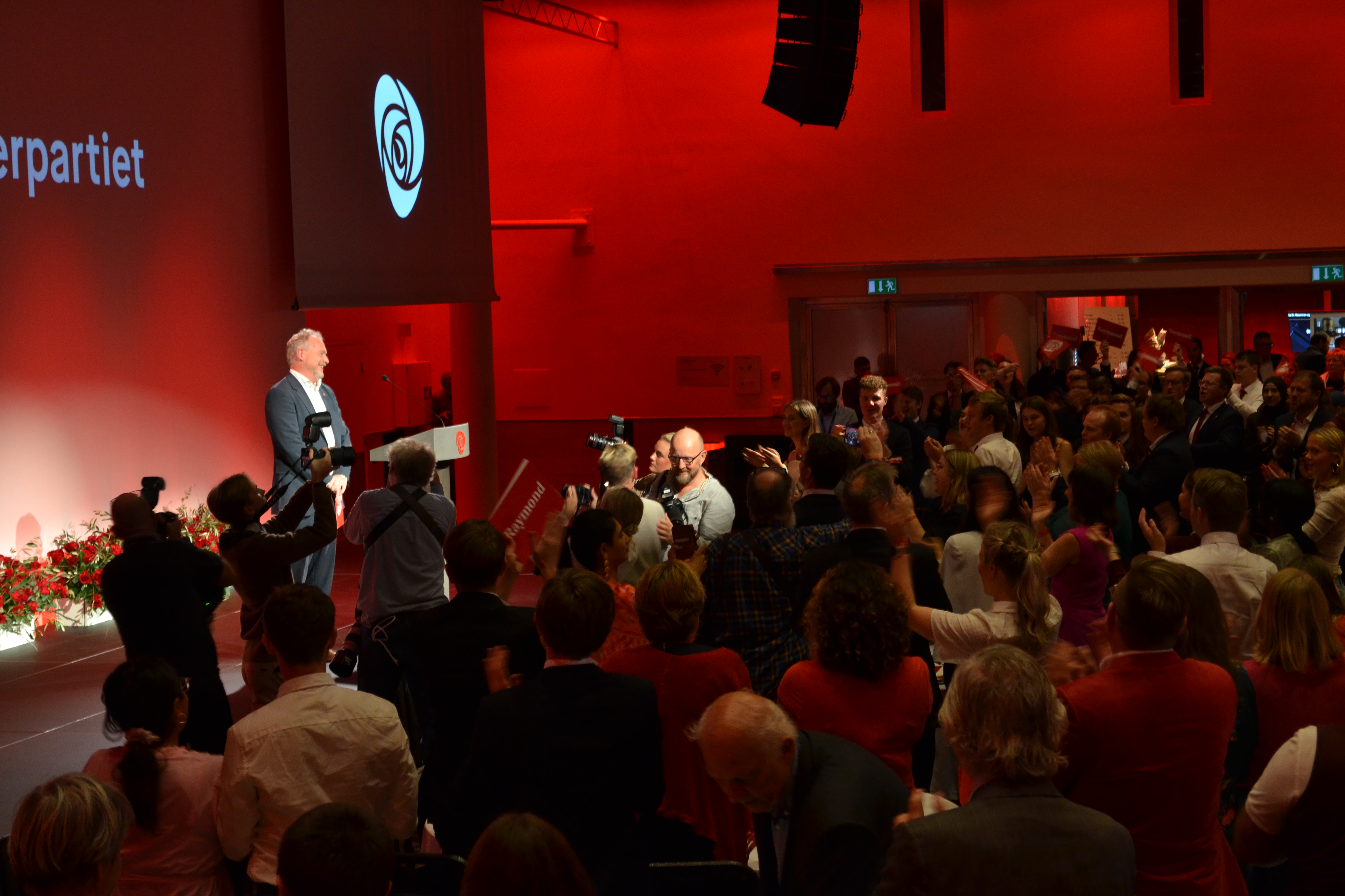 De første prognosene for kvelden er klare. Høyre er størst i Oslo med 31,3 % i følge NRK. Arbeiderpartiet ligger an til 17,7% oppslutning. Det er en tilbakegang på 2,3 prosentpoeng. Stemningen er likevel god på APs valgavake når NRK leser opp de første resultatene denne valgkvelden.