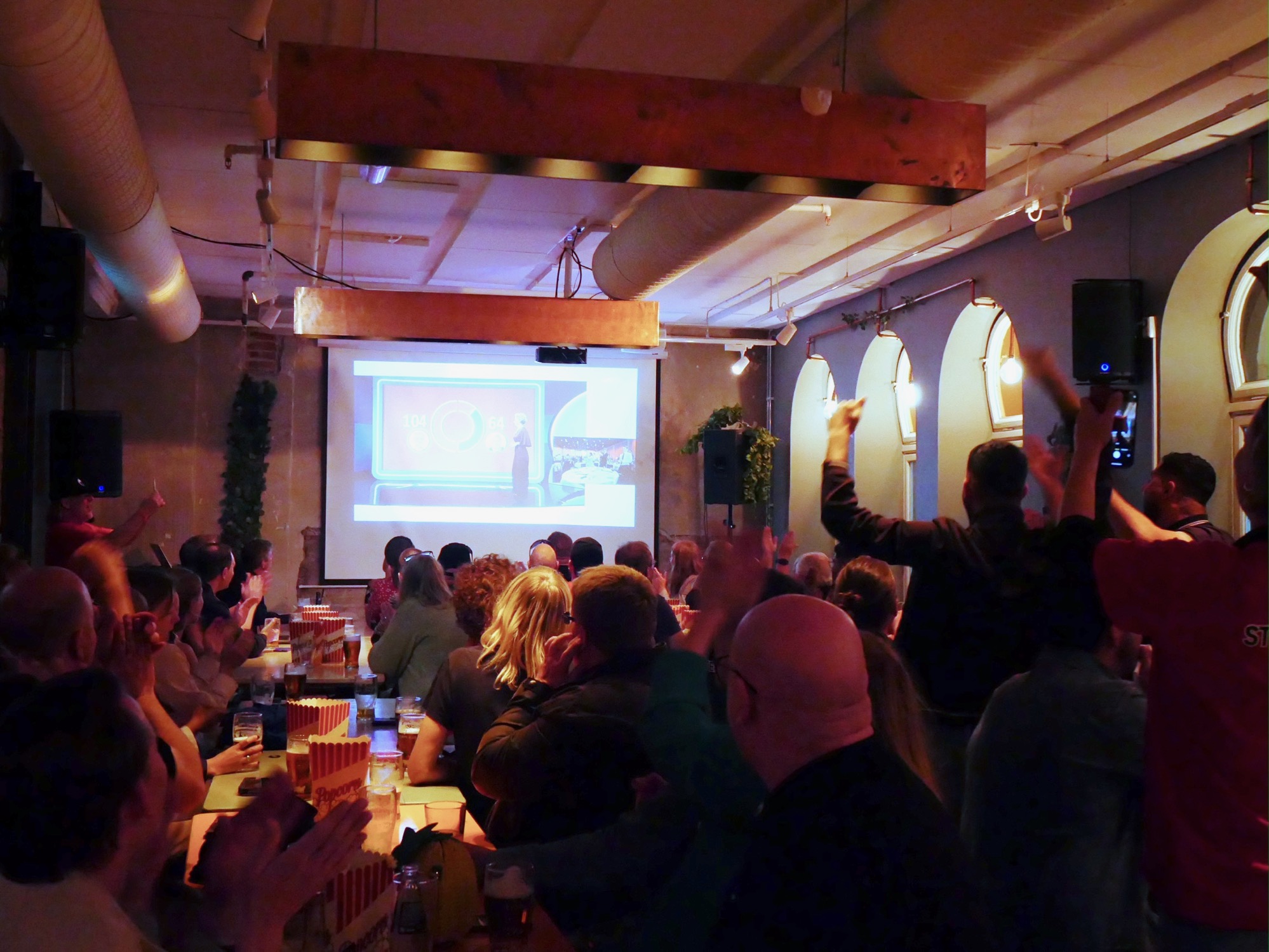 Oslo Sporveiers Arbeiderforening (OSA) har valgvake på utestedet Brygg. Det ble jubel og applaus da valgdagens første tall pekte mot et rødgrønt flertall.