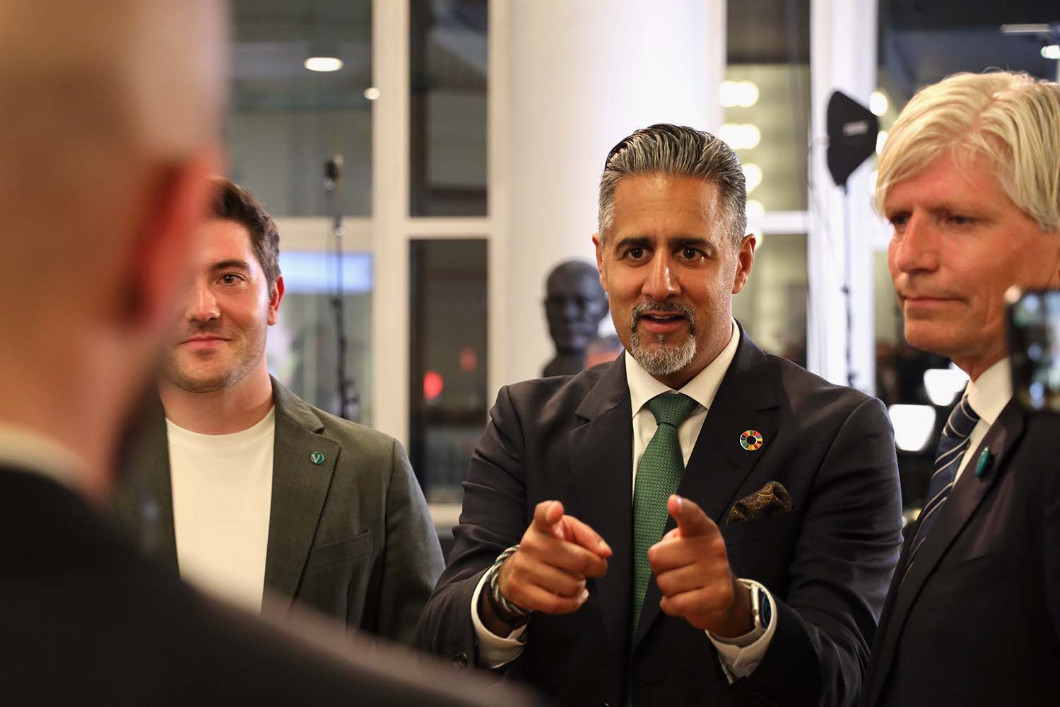 Abid Raja er også strålende positiv da han holder tale ikke lenge etter kl. 21.